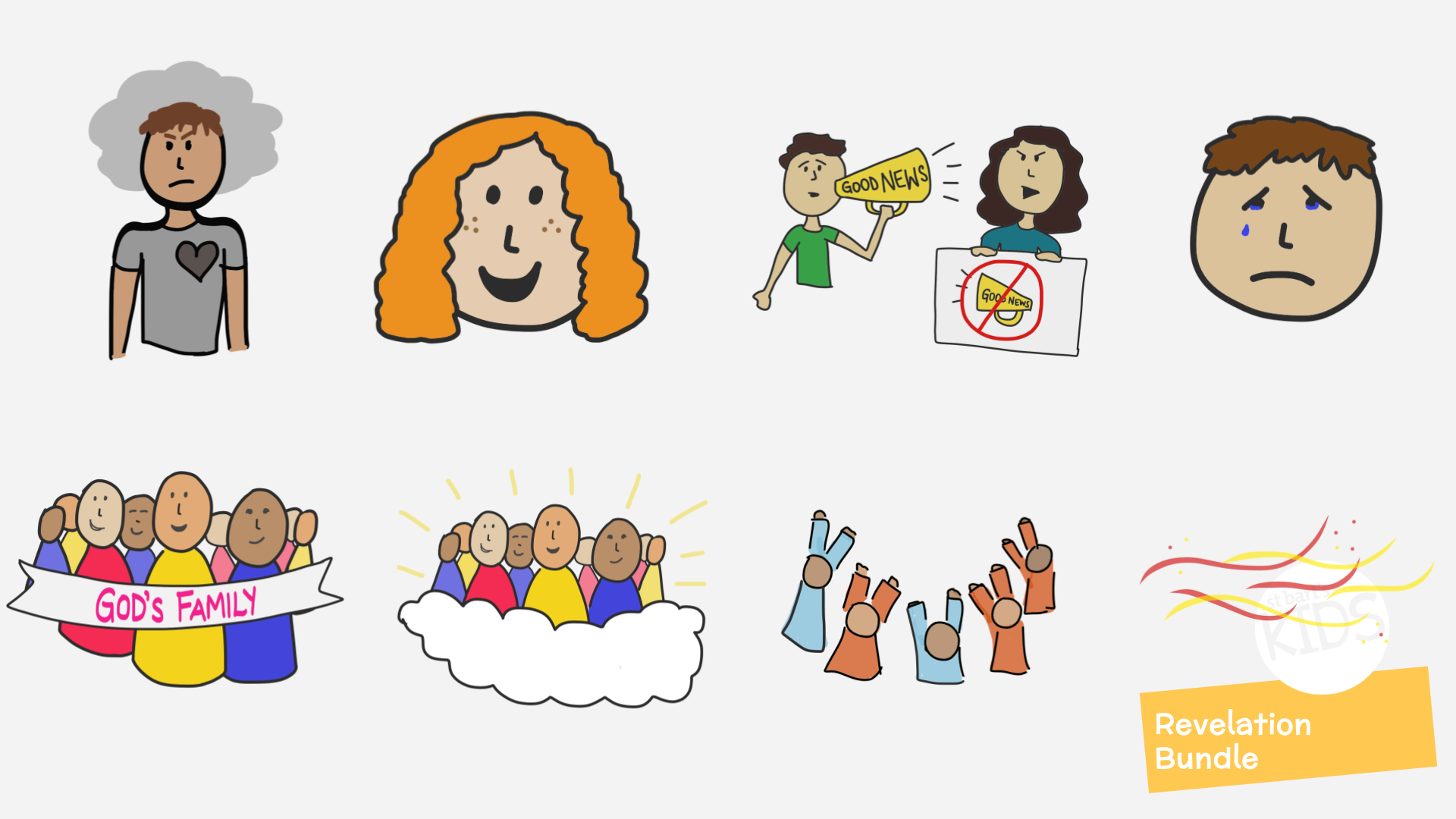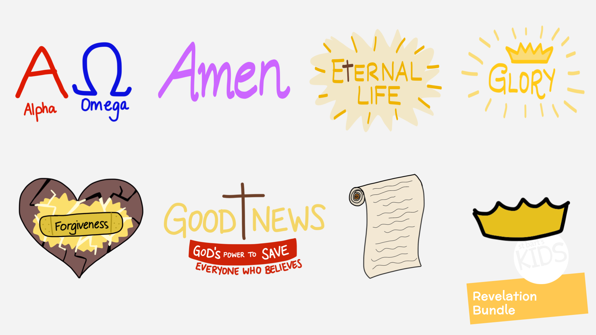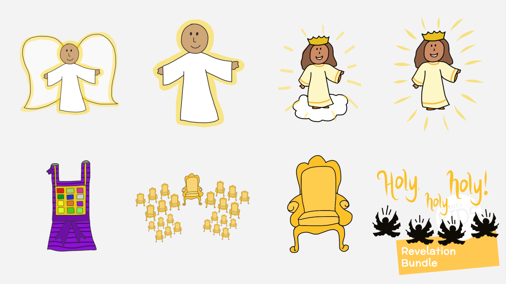 Download the Revelation Image Bundle Here for a total of 61 illustrations from the book of Revelation for teaching children. Images included in the bundle are below. Each image is in a png format with a clear background.